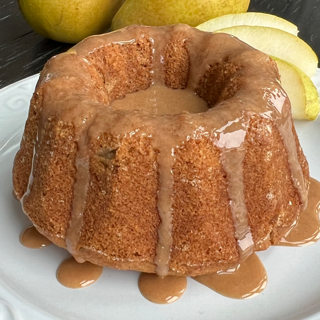 Mix dry ingredients together in mixing bowl and blend in remaining ingredients, except for diced pears. Fold in pears gently and distribute batter evenly into muffin cups or mini bundt pans. Sprinkle a coconut sugar/cinnamon mixture lightly over muffins, if desired. Bake muffins for 18-20 minutes. Mini bundt pans that measure 4" across the middle take about 25 minutes. Done when toothpick comes out clean.