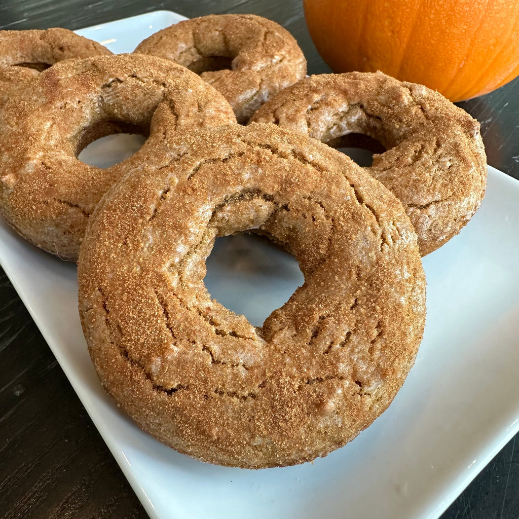 * Every Fall, I always seem to come face to face with the pumpkin spice donut stand either at the fair or local farm. So I have to have my own version, of course! These can never be the same, but they make a very nice substitute! Recipe makes 5-6 standard size baked donuts.